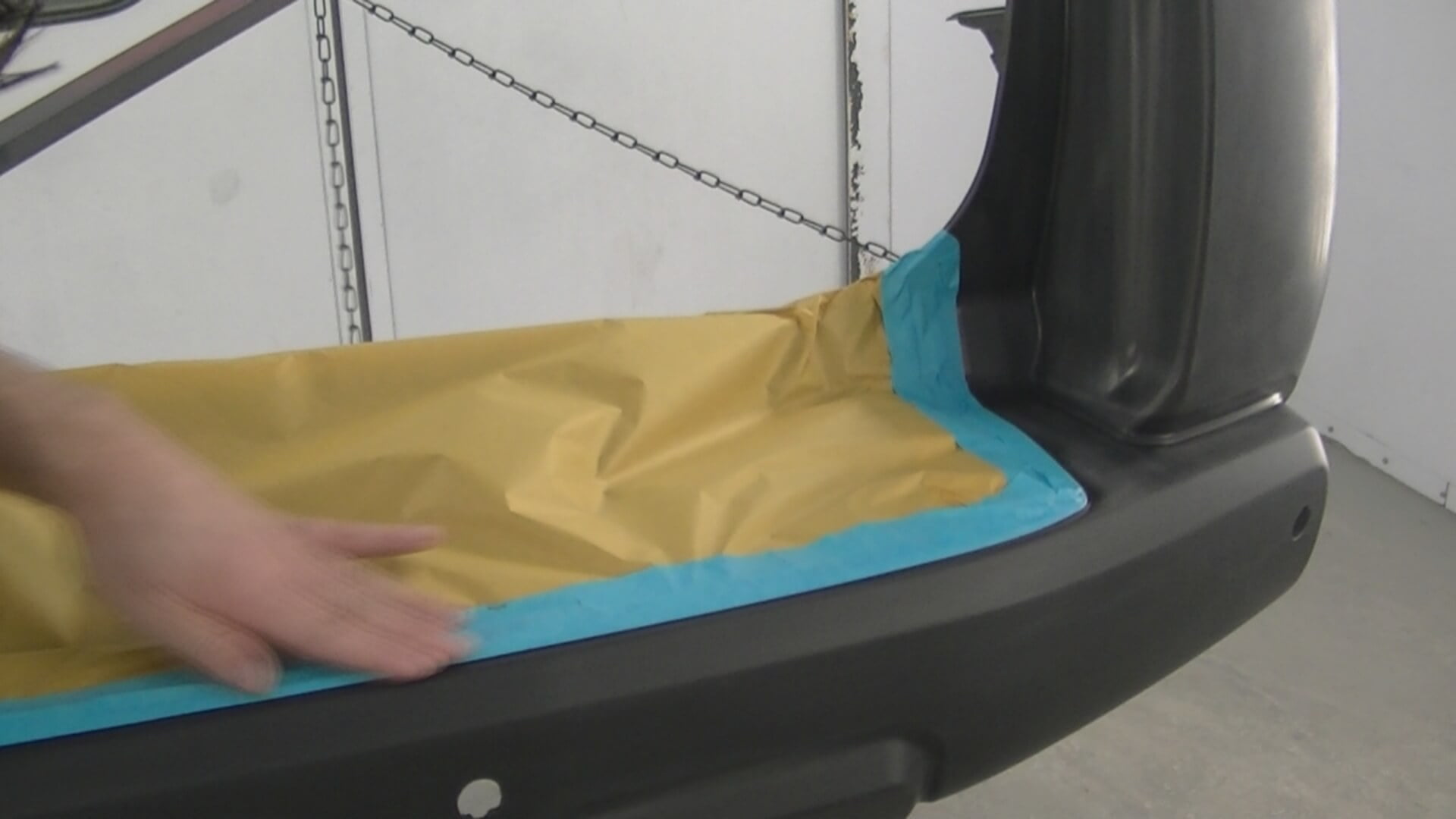 A plastic bumper is in need of painting starting from the raw plastic. Multiple steps are required including cleaning, priming / adhesion promoter & paint.