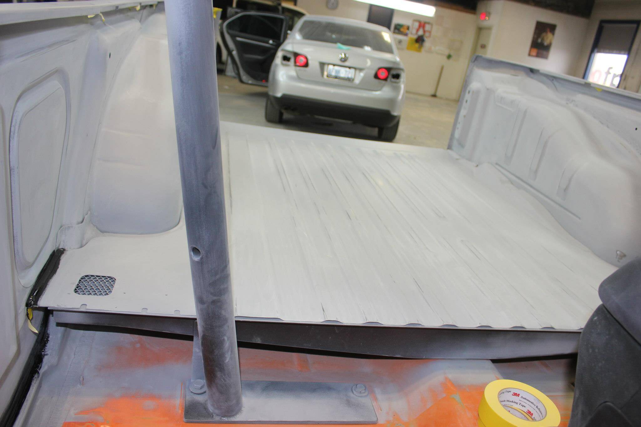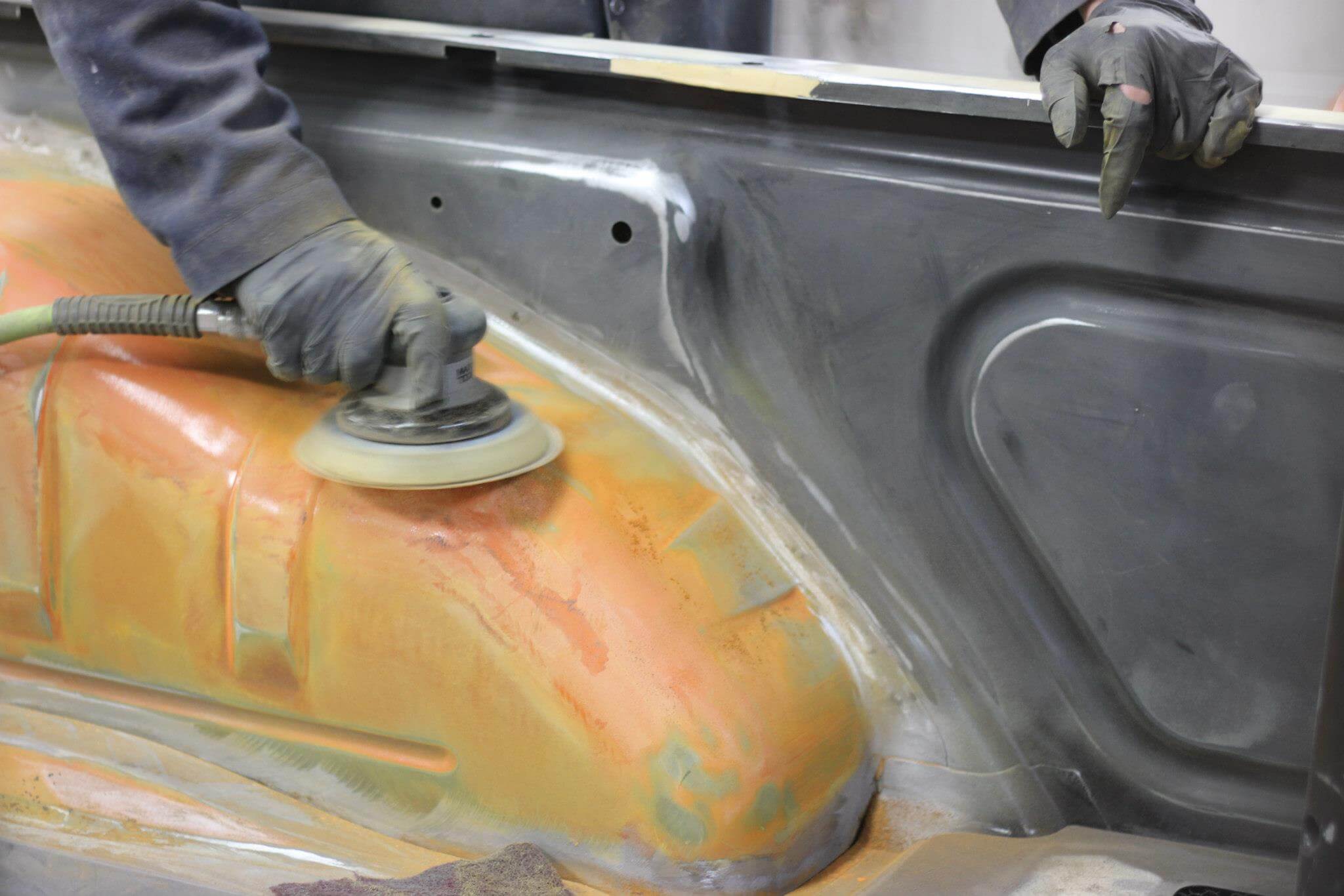 A Ford Pickup Truck, J7 Magnetic Metallic being repaired and sprayed using the Sata 5500 HVLP for Sealer & Basecoat, followed by the Sata 5500 RP for Clearcoat application. Sata is known for building professional spray equipment that will last for a very long time and perform well.